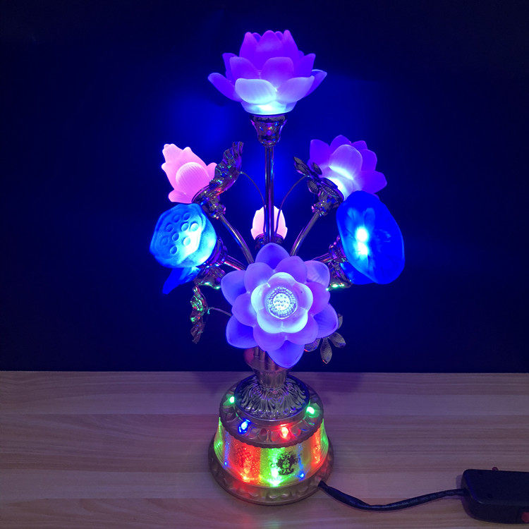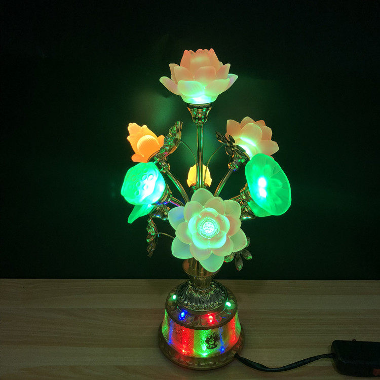 Nine pins LED colorful glass lotus lamp Buddha hall lamp Buddha front lamp for Buddha lamp Glass Buddha lamp Changming lamp