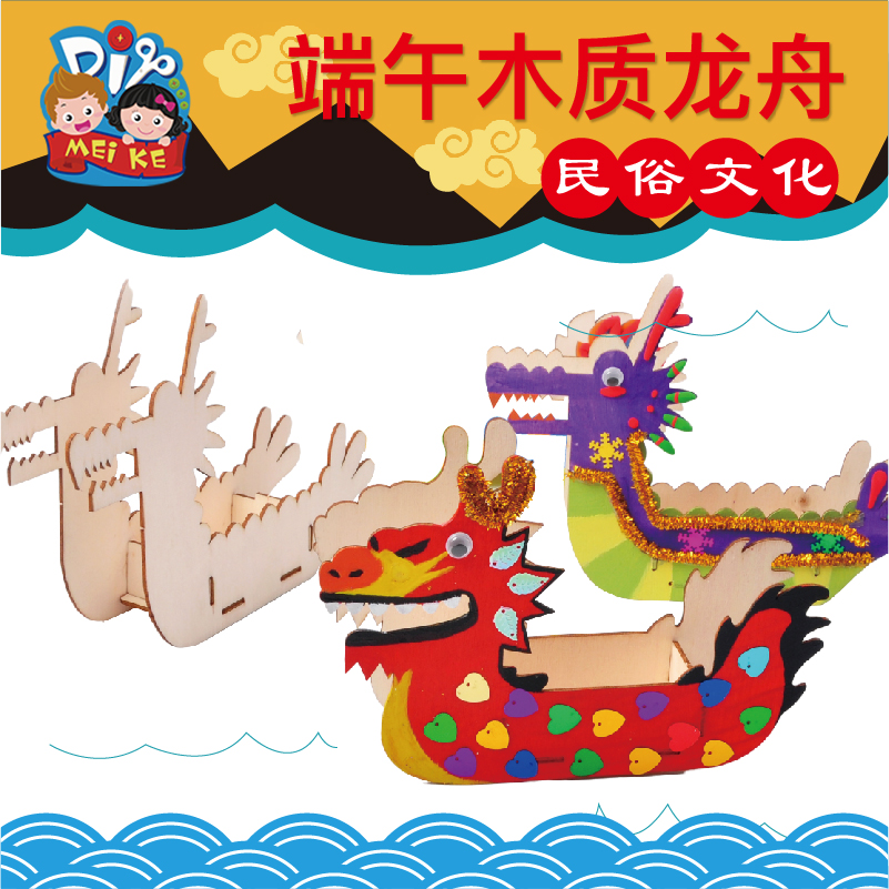The Dragon Boat Festival Artisanal Diy Wooden Dragon Boat Children Creative Fine Art Painting to make Toy Work Kindergarten Materials