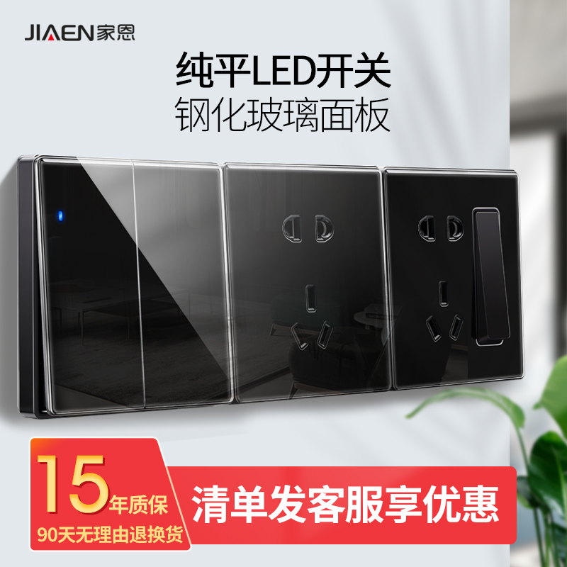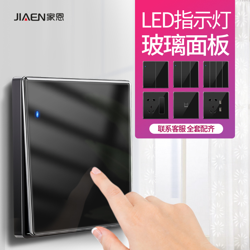 Opening single control with LED indicator (real tempered glass panel) Five-hole socket (real tempered glass panel) Two-open single control with LED indicator light (real tempered glass panel) Three