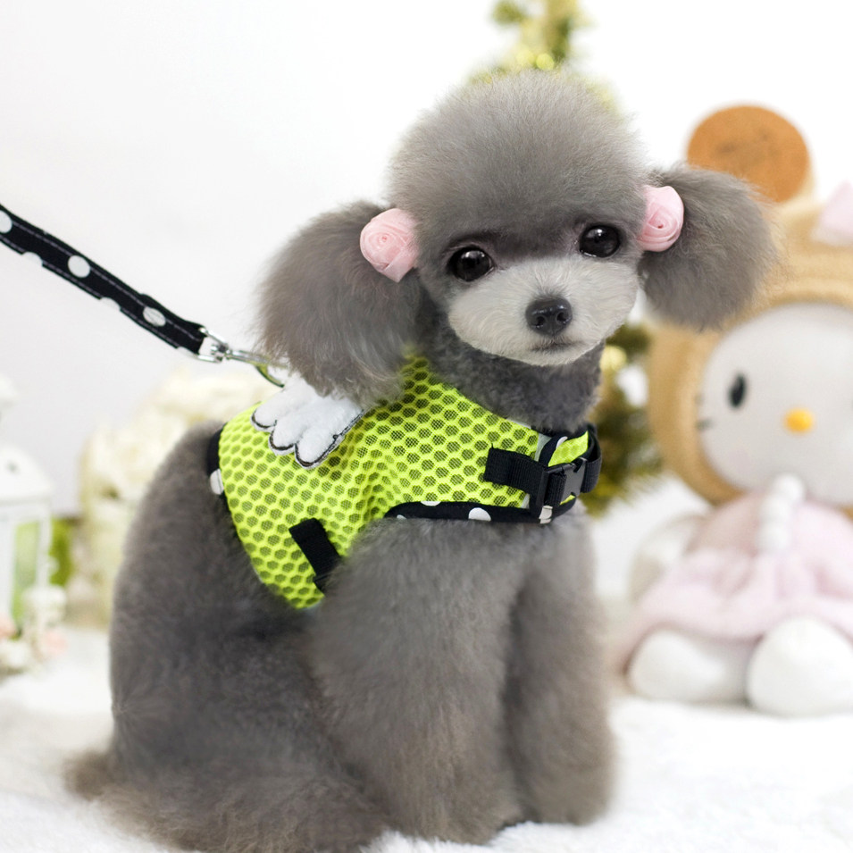 Teddy clothes summer with traction rope cat clothes male cat female cat hollow mesh angel wings chest holding baby bag