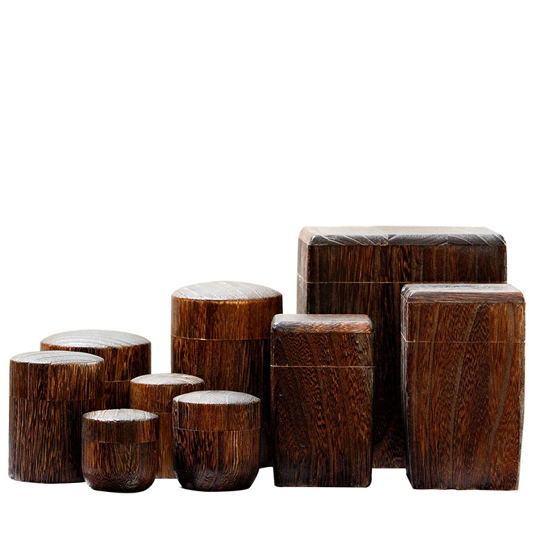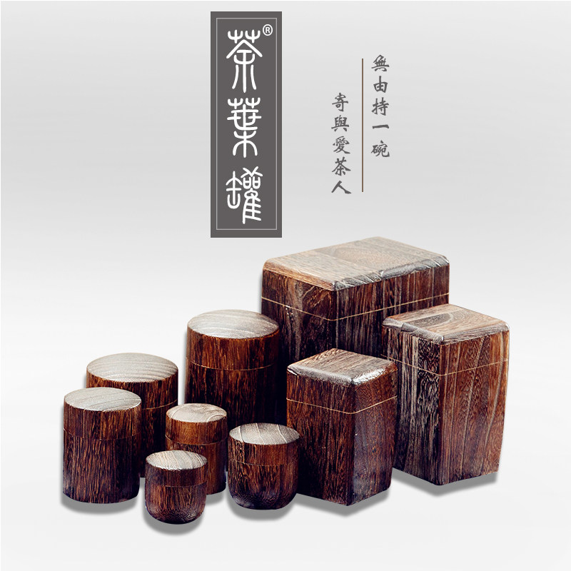 Chinese solid wood portable tea storage tank sealing tank packaging box handmade moisture-proof flower tea collection cans