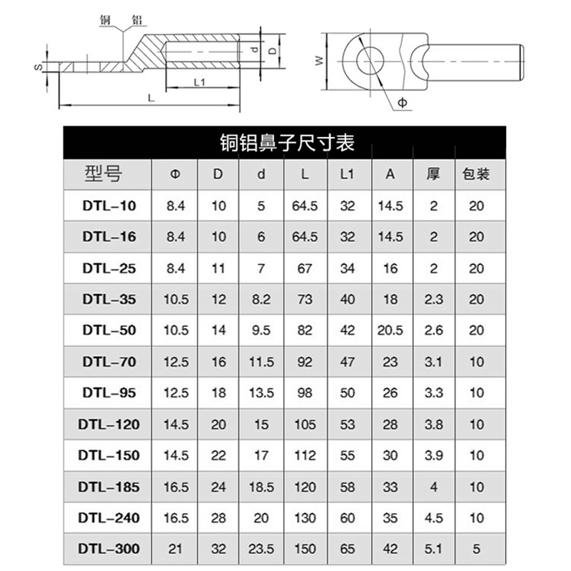 DTL-10 copper aluminum nose DTL-16 copper aluminum nose DTL-25 copper and aluminum nose DTL-35 copper and aluminum nose DTL-50 copper and aluminum nose DTL-7