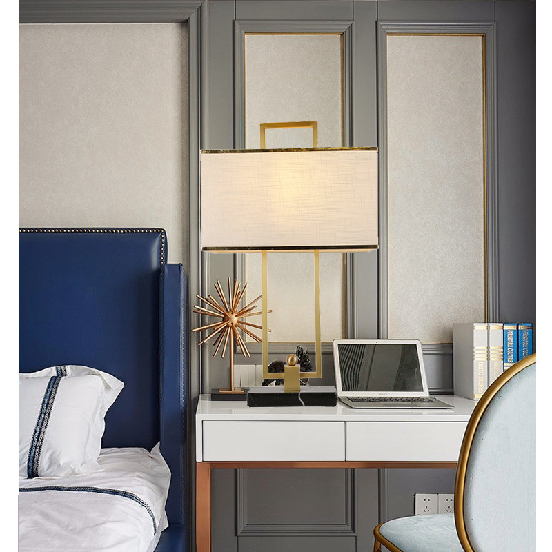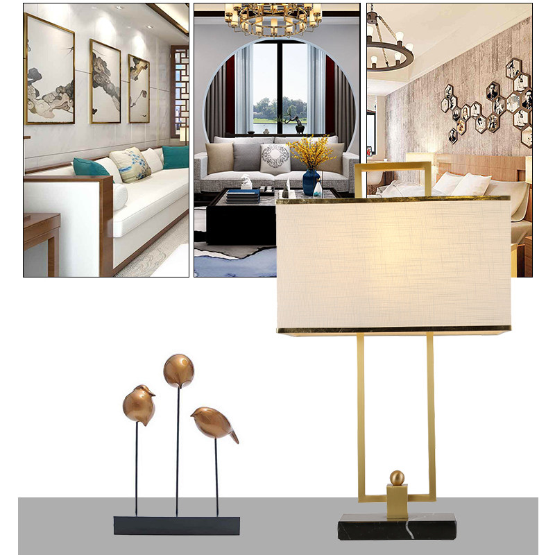 Post-modern New Chinese Simple Metal Marble Base Lights Catalogue Room Bedroom Lights