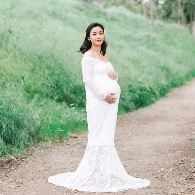 New Products Speed Sale for pregnant women in Europe and America photo Write a real foreign dress Lace Bag Body Clothing Photo Gallery Writing Real Tug Tail Long Dress