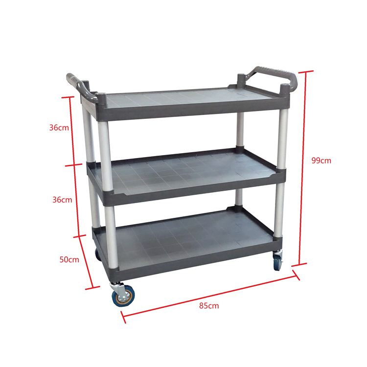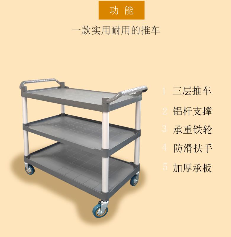 Plastic three-tier trolley hotel food delivery restaurant serving mobile storage tableware multi-purpose commercial use