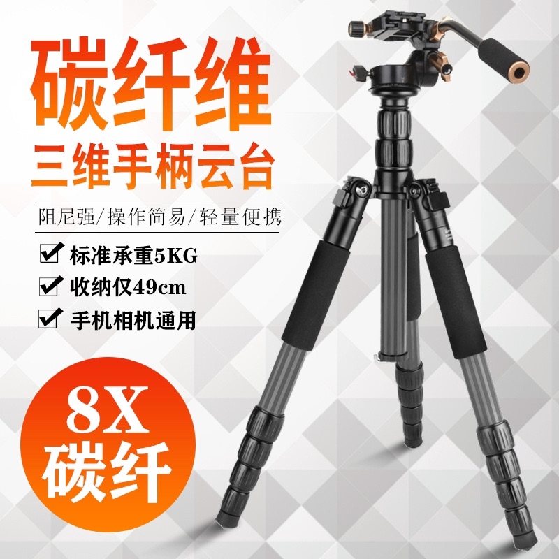 Sdermbolly carbon fiber portable camera tripod three-dimensional panoramic tripod head micro single eye camera Anti-photography mobile phone rack