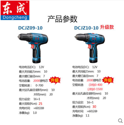 Dongcheng rechargeable drill DCJZ09 10-10 multifunctional lithium electric drill 12V household electric drill electric screwdriver Dongcheng