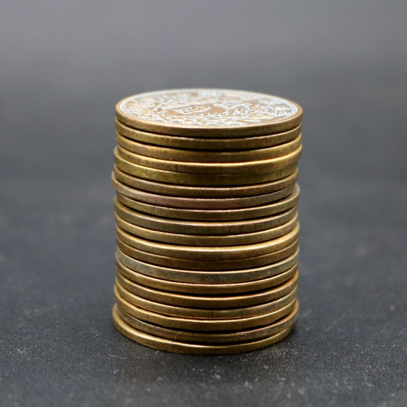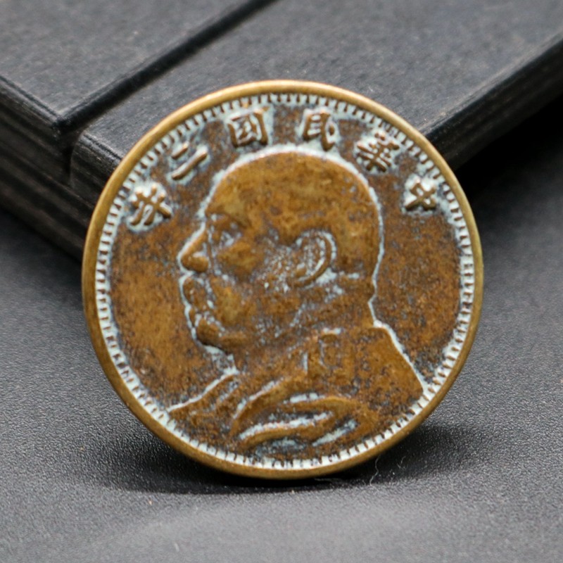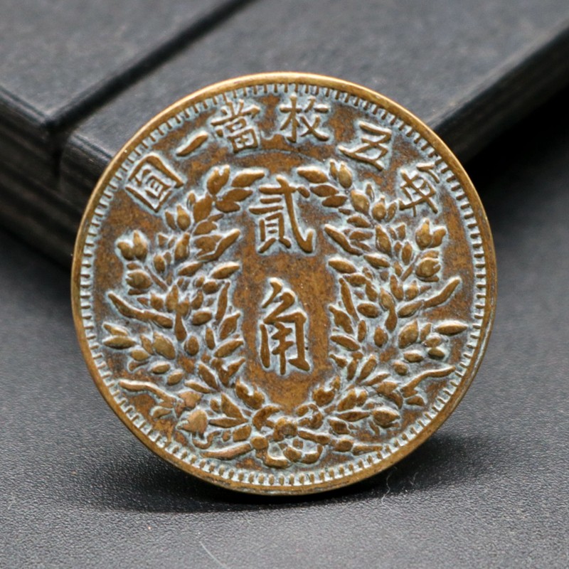 Antique brass copper plate, two years of the Republic of China, big head copper plate, one corner, five pieces, one yuan, about 27 cm in diameter