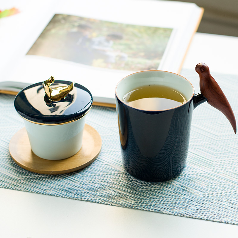 Tao Zhiyi white porcelain with lid mug tea water separation cup office cup master cup tea cup couple pair cup