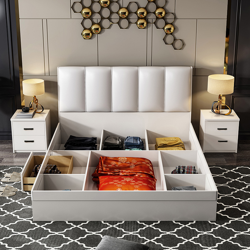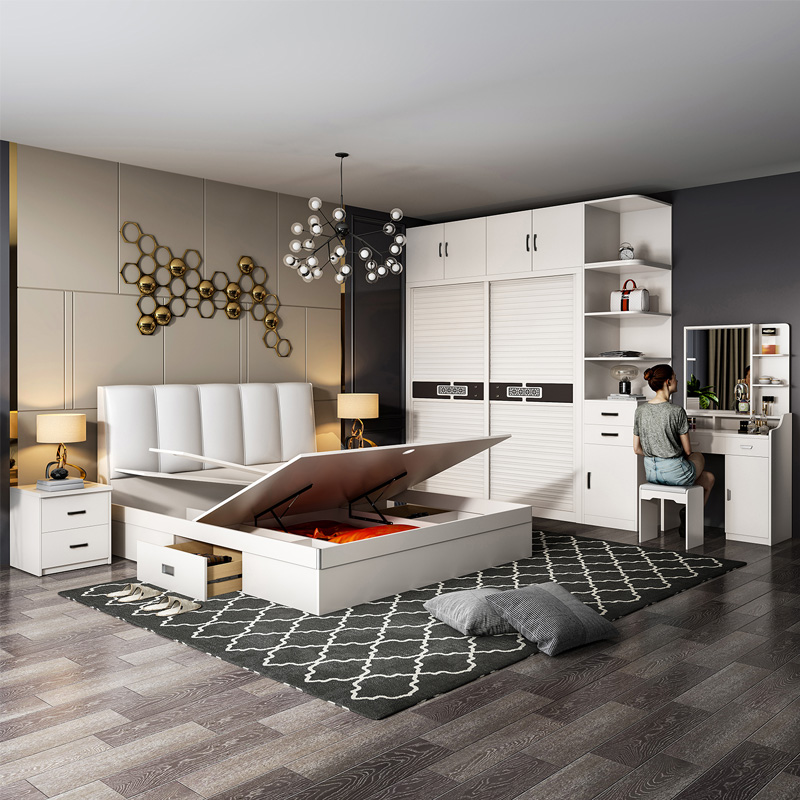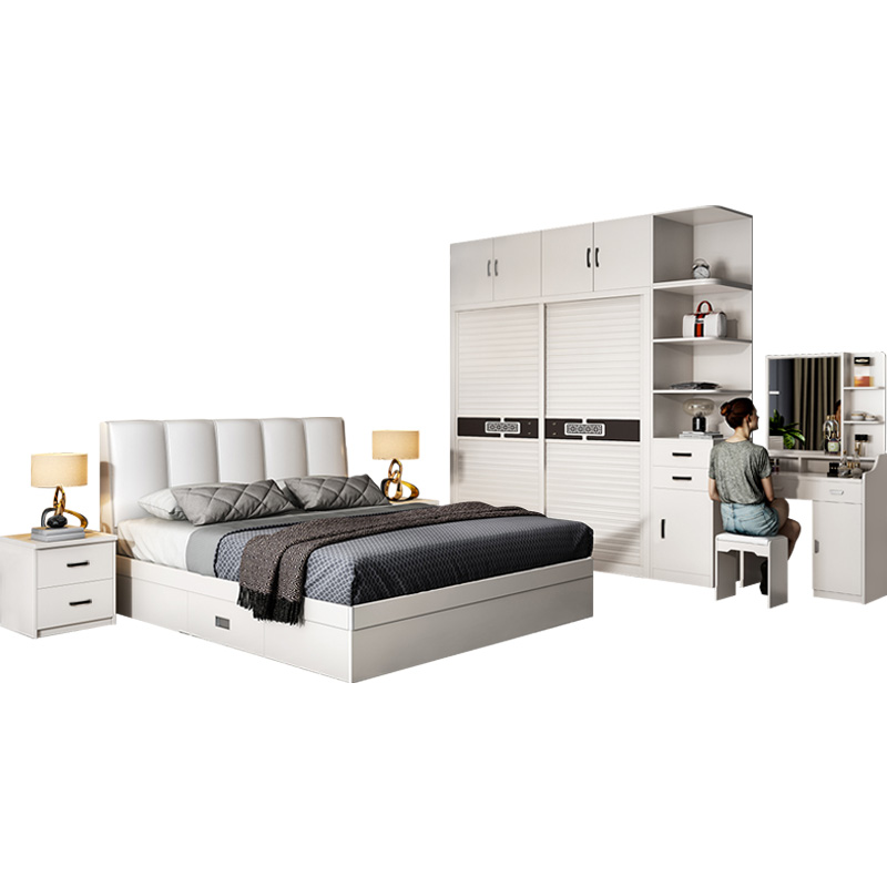 Nordic bed modern simple wardrobe master bedroom double bedroom furniture set combination wedding cabinet whole house match