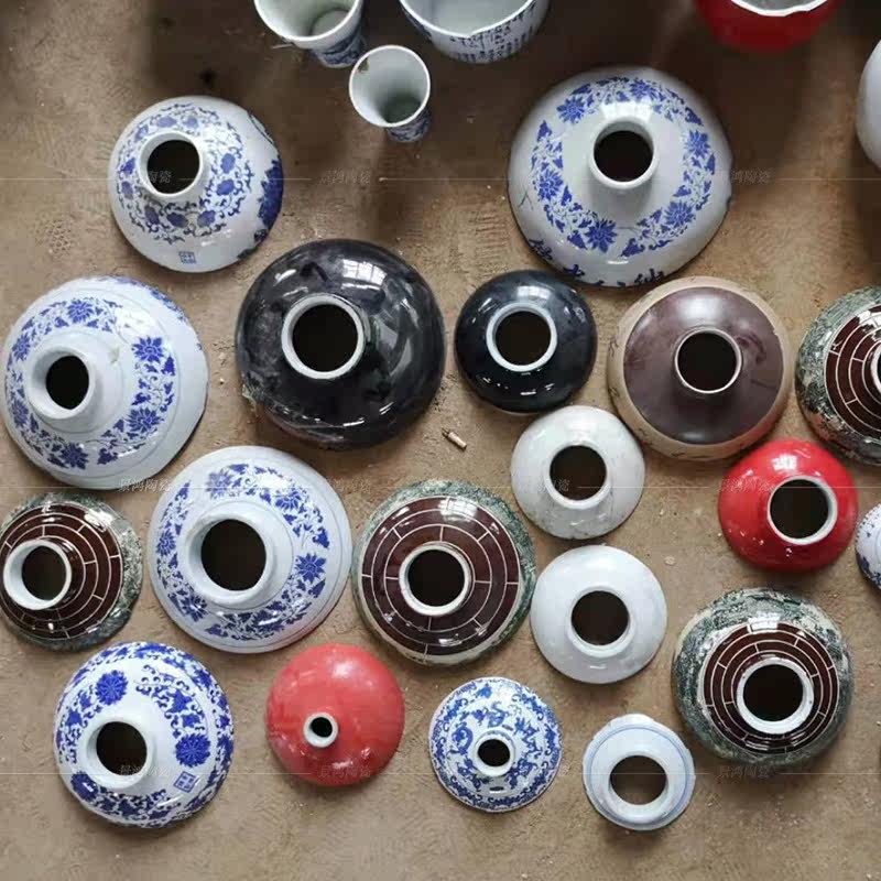 The new Jingdezhen blue and white porcelain pieces ceramic fragments material accessories residual dish plate half bottle mouth outdoor courtyard background wall