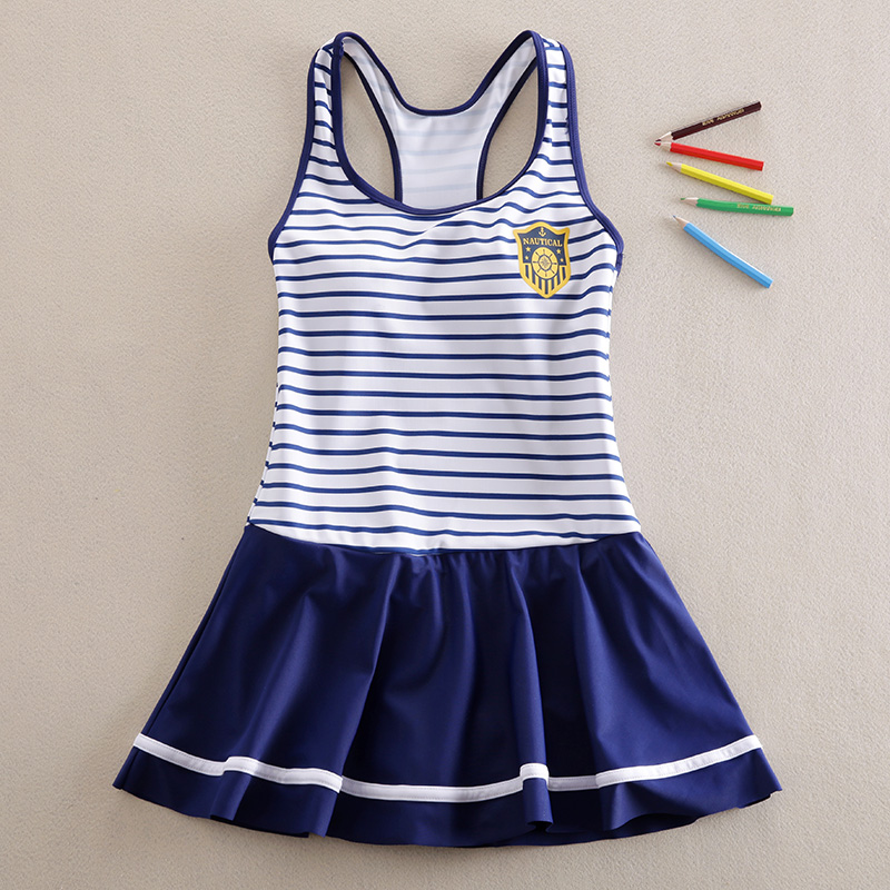 Girls Striped Swimsuit Jumpsuit 10 Large children's skirt boxers student Swimsuit 12 Children's swimsuit Girls 15