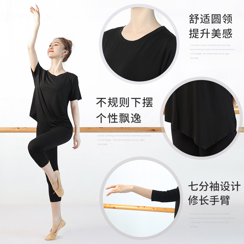Modern dancing persuades adult tops female loose round coach Short sleeve cotton black dance clothing