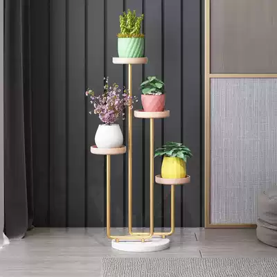 Light luxury wrought iron flower rack shelf Balcony floor-to-ceiling multi-storey indoor living room Nordic chlorophyll golden ge flower pot rack