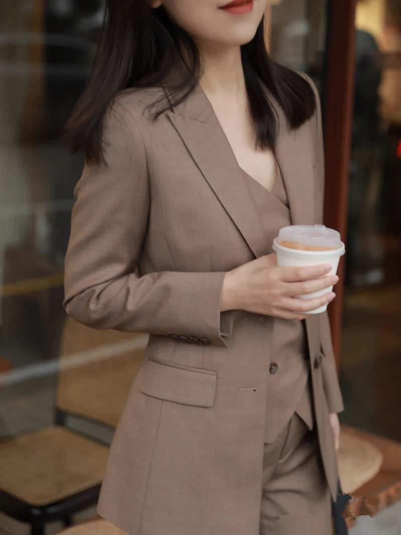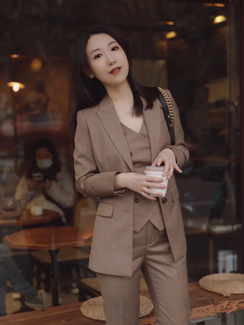 Perfect relationship Chen number of cards with its color single row of buttresses and suits suit women's activities to host the conference suit suit