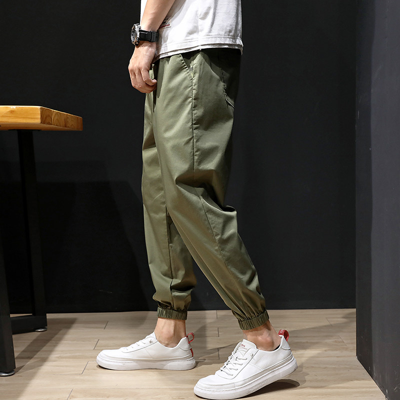 Summer Ice Pants Men's Loose ankle-length pants Ultra-thin Quick Dry Silky Sports Corset Mouth Pants Fat Harren Pants