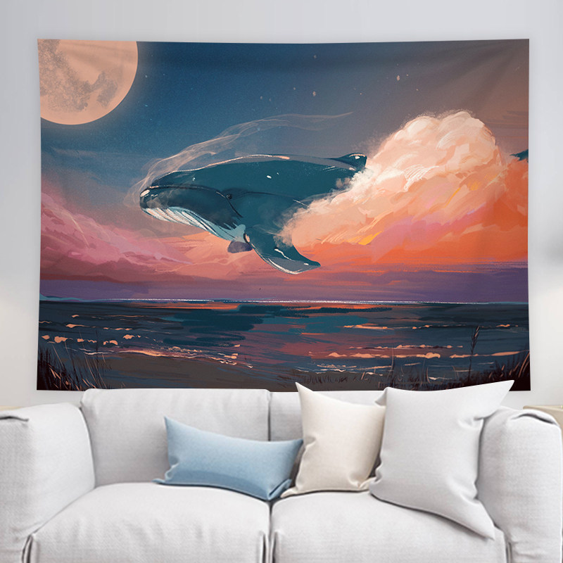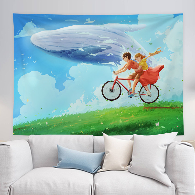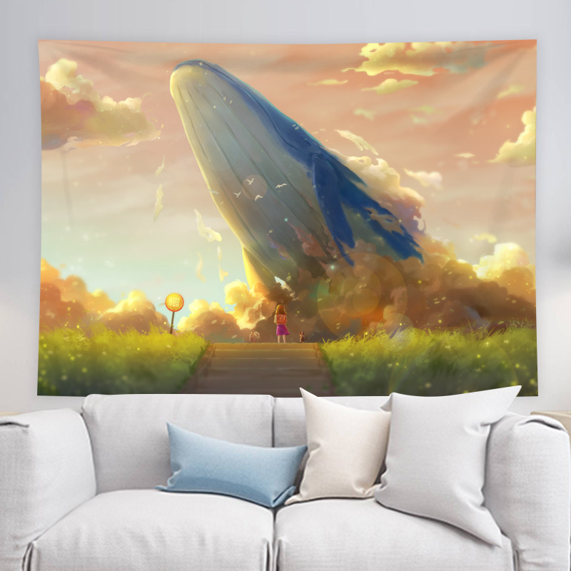 Hanging cloth background cloth ins wind cartoon animation Flying into the whale dormitory room Bed decoration Wall cloth tapestry
