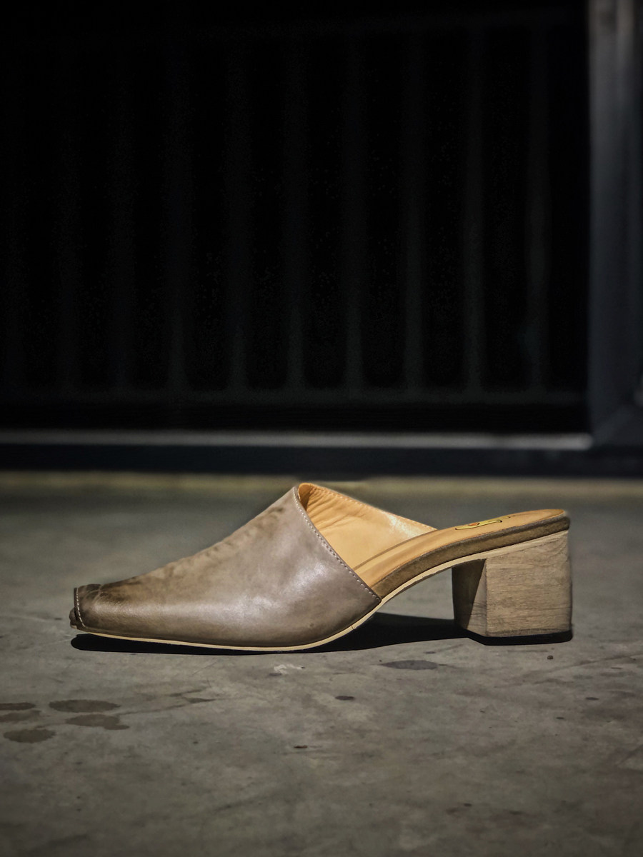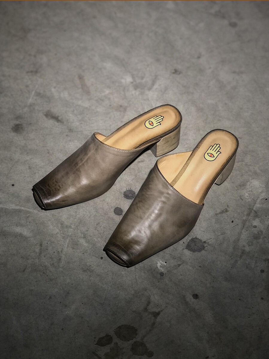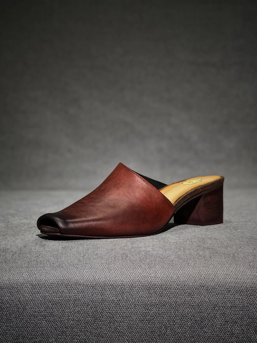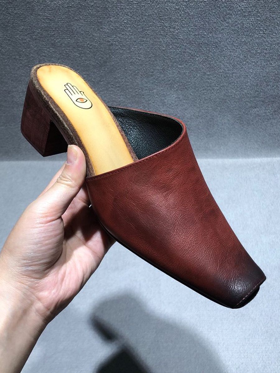 Ding Yin Studio ) Original design asymmetric retro square-headed fish mouth sandals handmade thick-heeled slippers for women