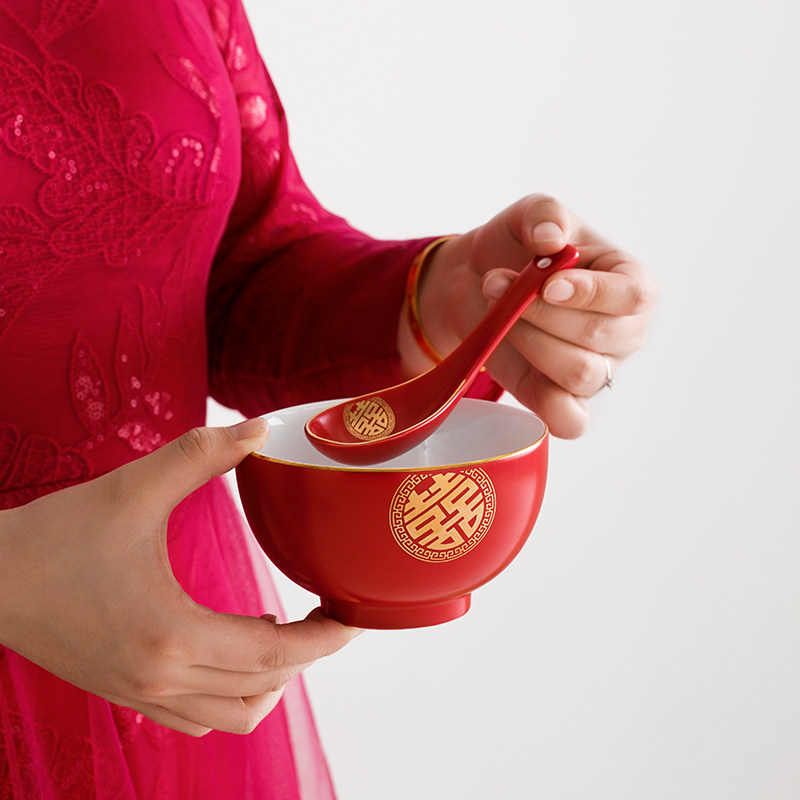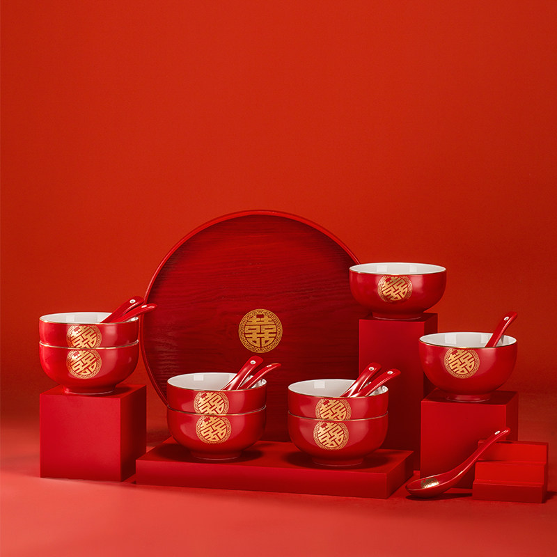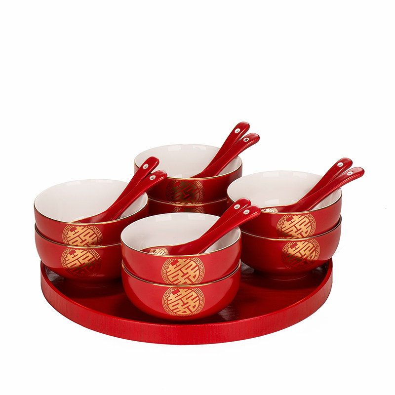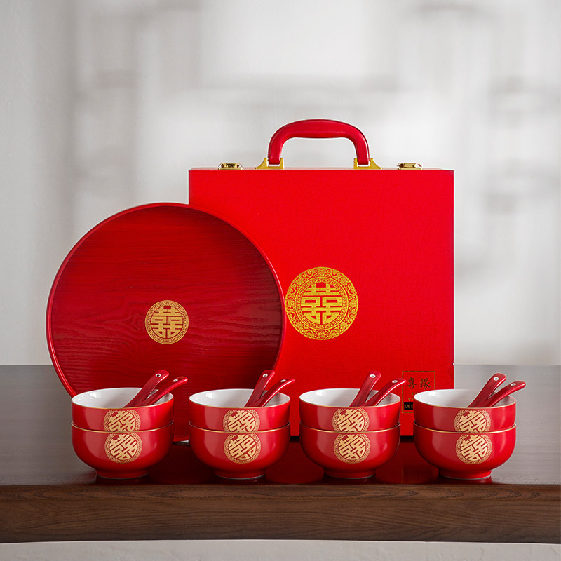 Happy Bowl Eight Sets Gift Boxes High-end Wedding Pair Bowls Wedding Supplies Household Gifts for Girlfriends and Newcomers Custom Lettering