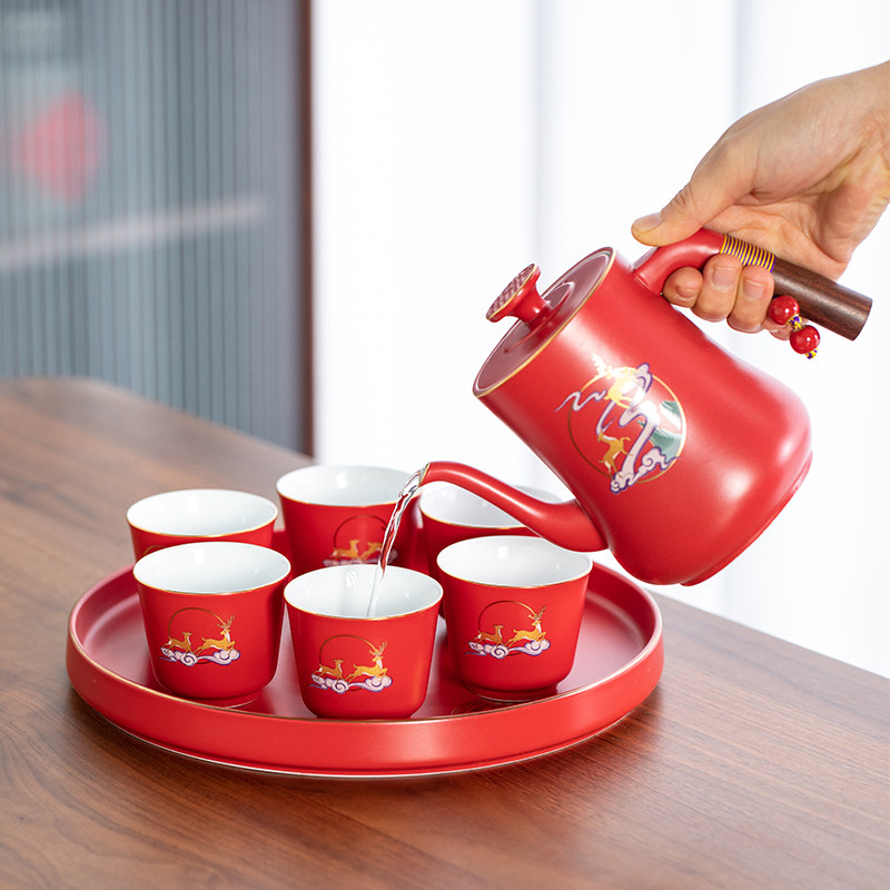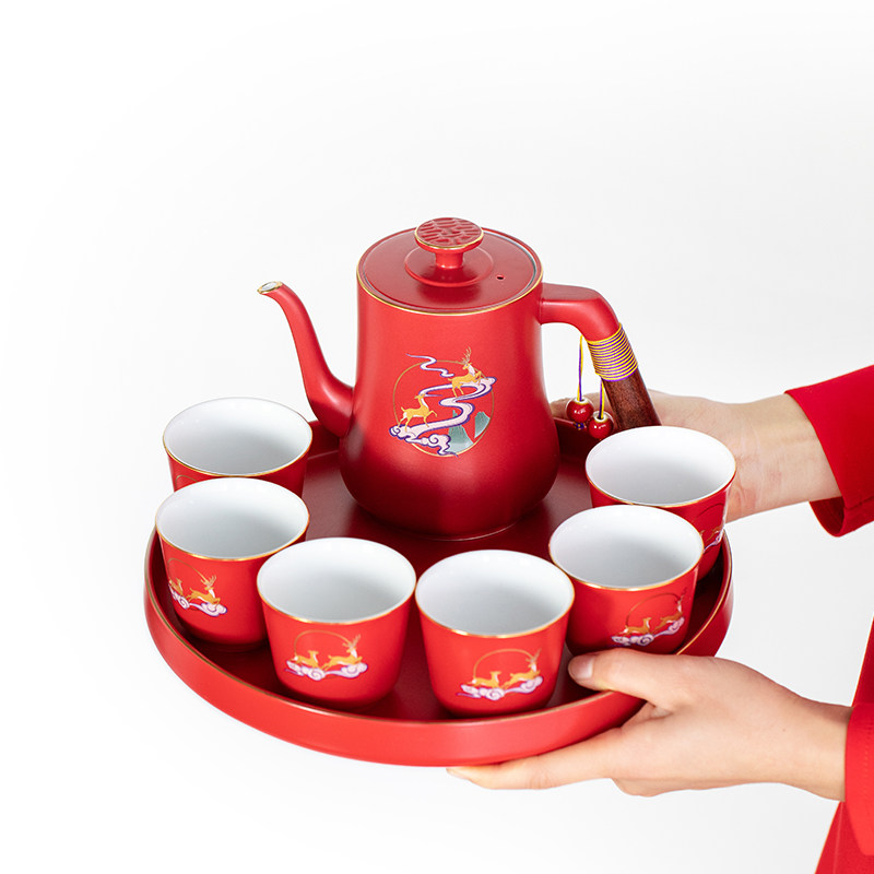 All the way with a pot of six cups with a tray gift box YL518 accompanied by a pot of six cups with a tray YL518