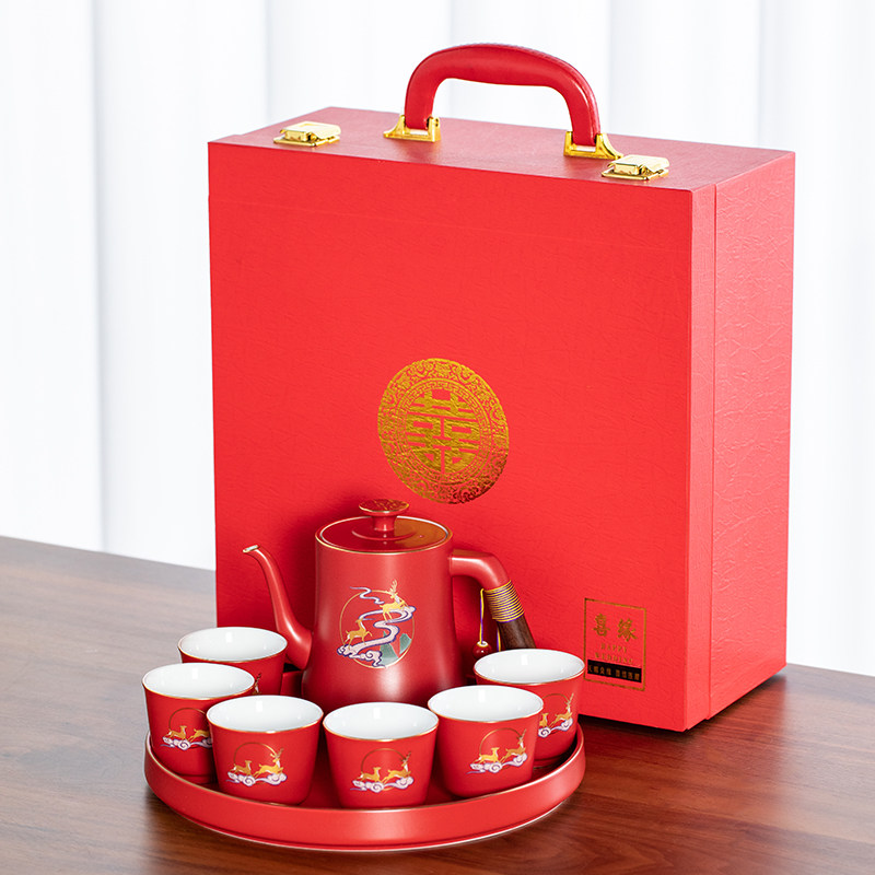 Teapot gift box set wedding toast tea cup large tea set set happy cup wedding wedding gift ceramic custom