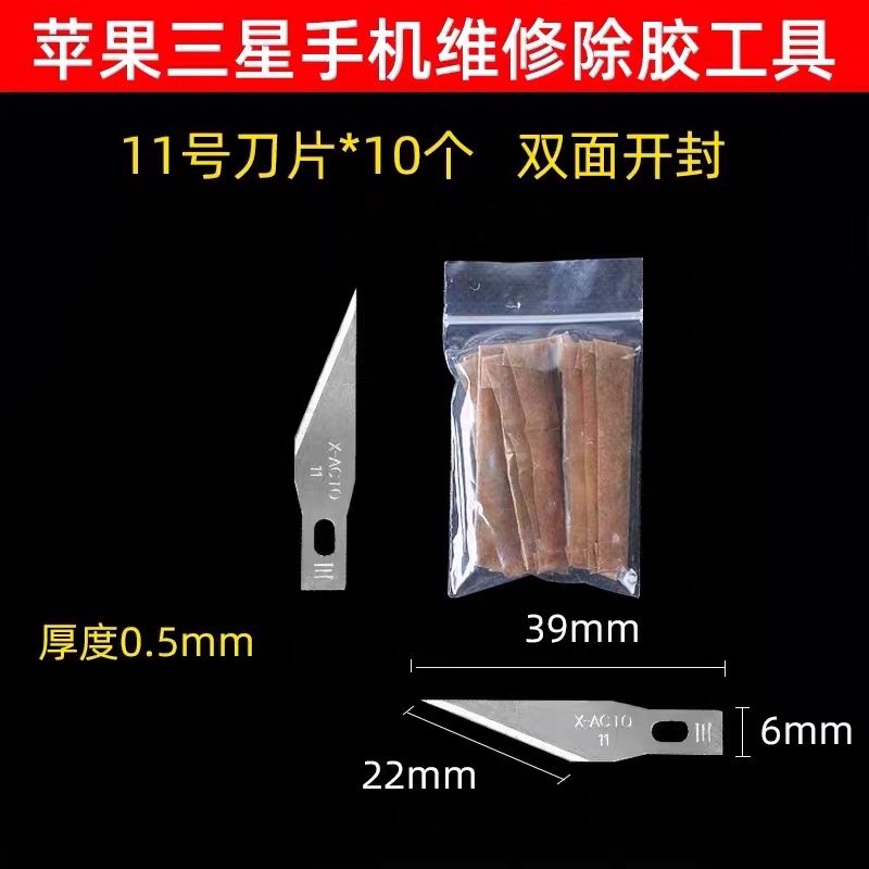 No. 11 standard sloped blade (1 pack of 10 pieces) 4-sided flat-head blade (1 pack of 10 pieces) 16 Number of tapered blades (1 pack of 10 pieces) 3 Number of blades (1 pack of 10 pieces) 4A deglue