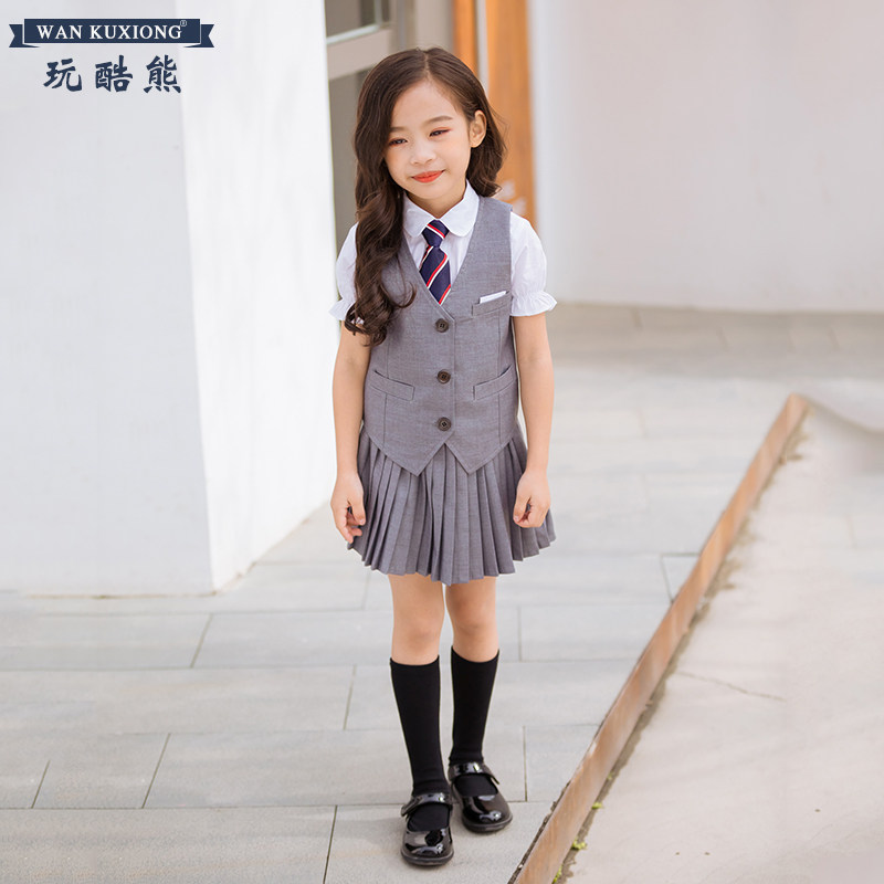 Kindergarten summer clothing primary school student academic style school uniform three-piece summer children's class clothing performance graduation clothing
