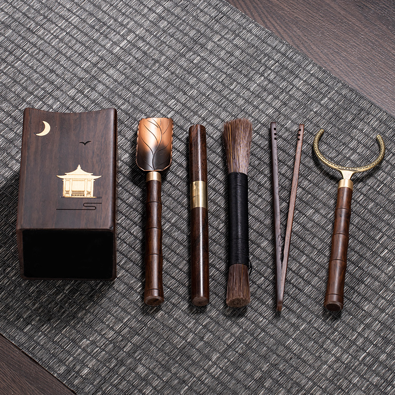 Non-craftsman black sandalwood tea ceremony six gentleman set tea making tools Tea spoon clip knife Tea tube storage Gongfu tea set accessories