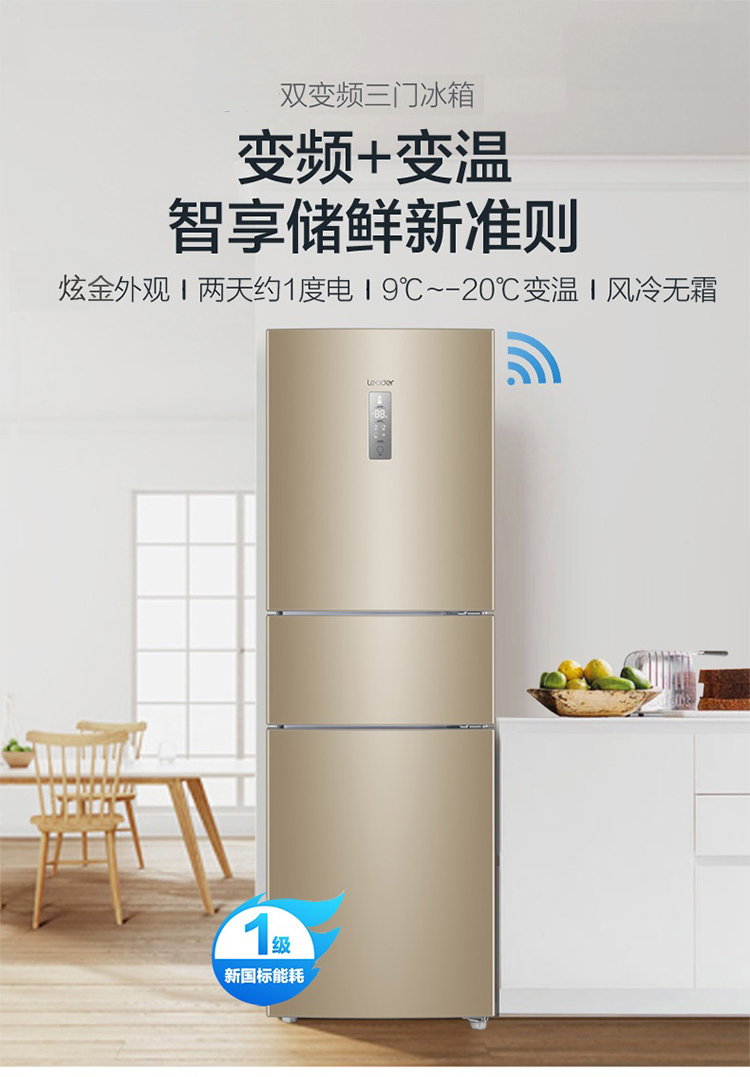 Commander Haier Official 218L Three Door Level Frequency Conversion Air-cooled Frost-free Rental Energy Saving Home Refreshing Small Fridge