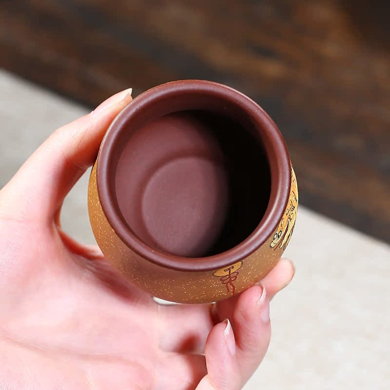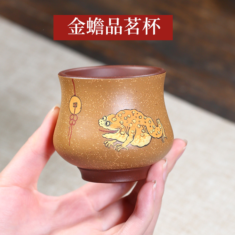 Yixing Original Mine Purple Clay Pure Handmade Clay Drawing Golden Toad Master Cup two color tasting small cup Gongfu Tea Tea Bowl Tea Bowl