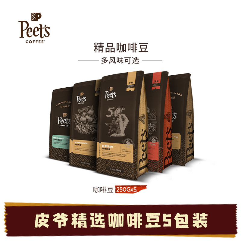 Peets Leather Lord Fresh Baking Handcrafted Baking Boutique Coffee Beans 250g × 5 Packs Mixed Dress