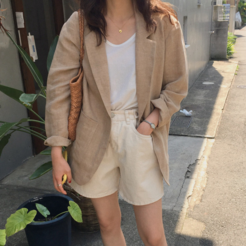 chic Korean version loose small blazer women 2021 summer new thin temperament retro style linen suit women