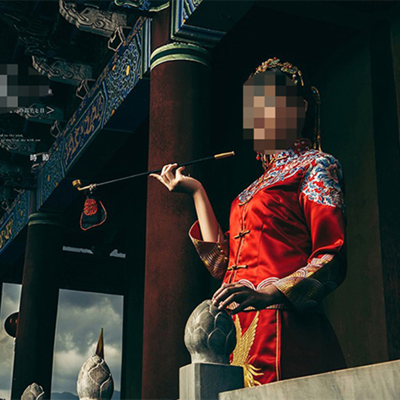 Antique long tobacco pole photo studio hotel photo Chinese wedding photo creative costume photo props Republic of China style light retro pipe