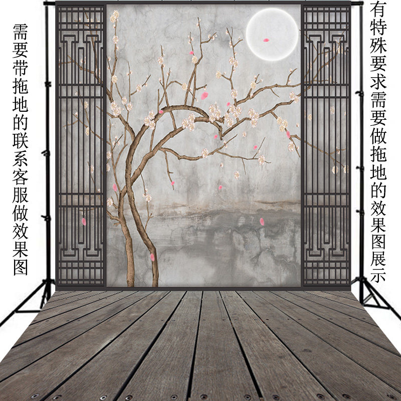 Direct sowing room 3D stereo film shooting background cloth net red live course retro background wall water ink ancient wind background