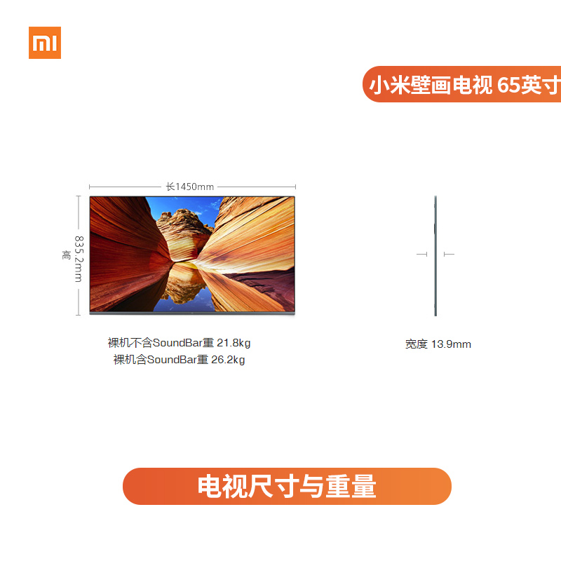 Xiaomi Mural 65 "BH Ultra Thin Smart Network Ultra High Definition 4K Flat Panel LCD TV 75 Two Pieces