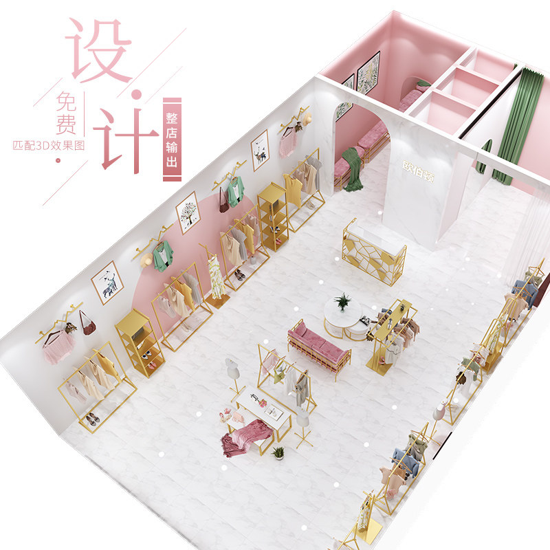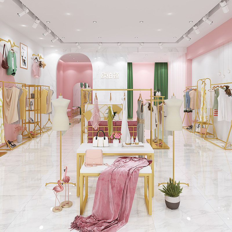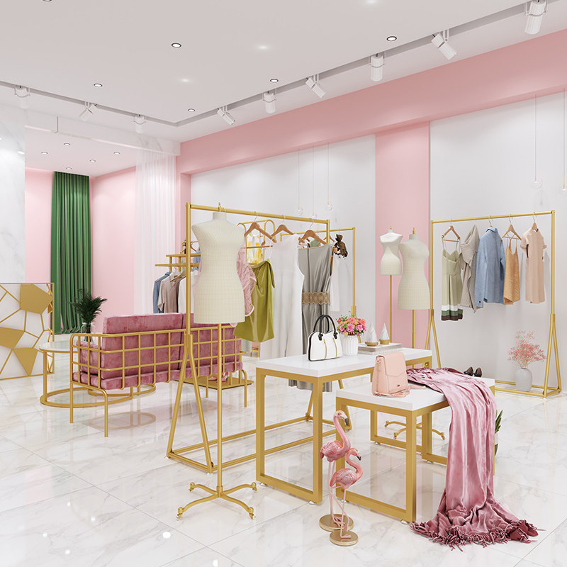 Auberton Clothing Store Show Shelves Landing Style Gold Hanging Clothes Rod Clothes Racks Women's Clothing Store Shelves Creative Decorations