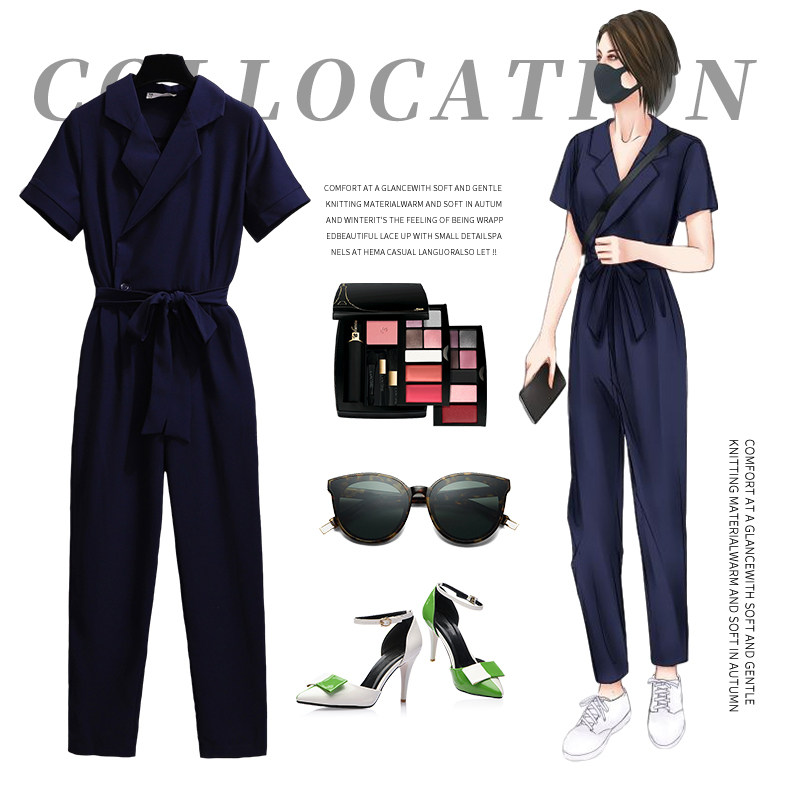 Short sleeves slim fit pants female summer 2022 Summer slim fit snow spinning suit wide legs High waist and small feet slim fit