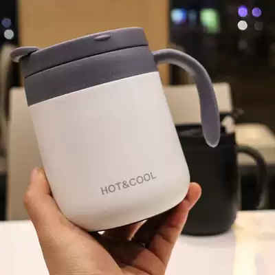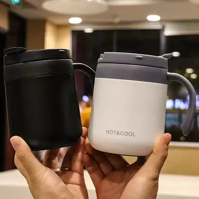 Japanese-style coffee cup Simple and fresh handle Mug with lid Stainless steel vacuum cup Office household cup