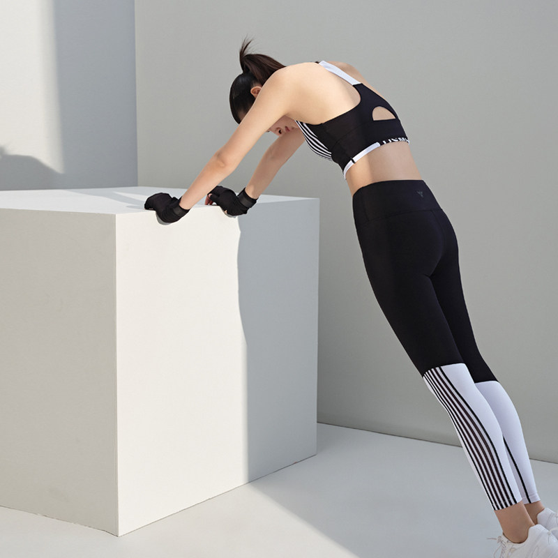 Upplace asymmetric black and white striped yoga pants elongated leg belly trousers women's outer wear sports pants fitness