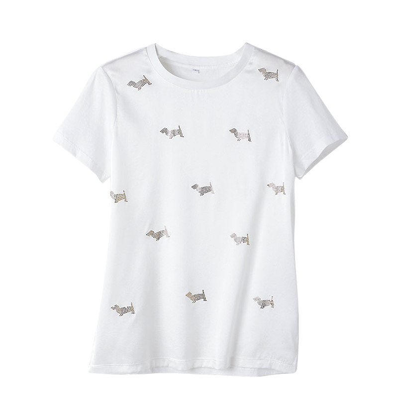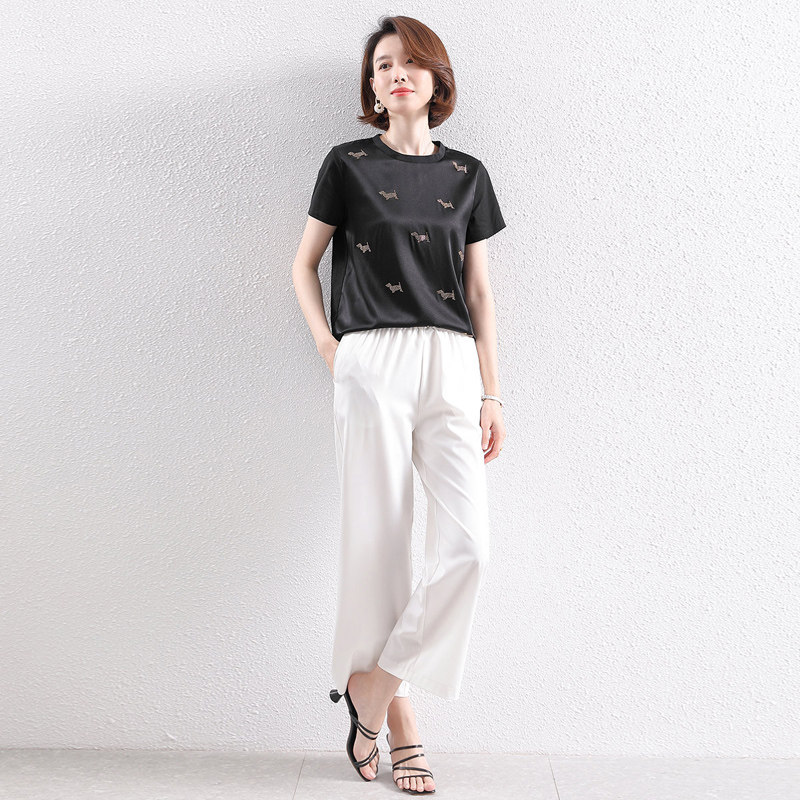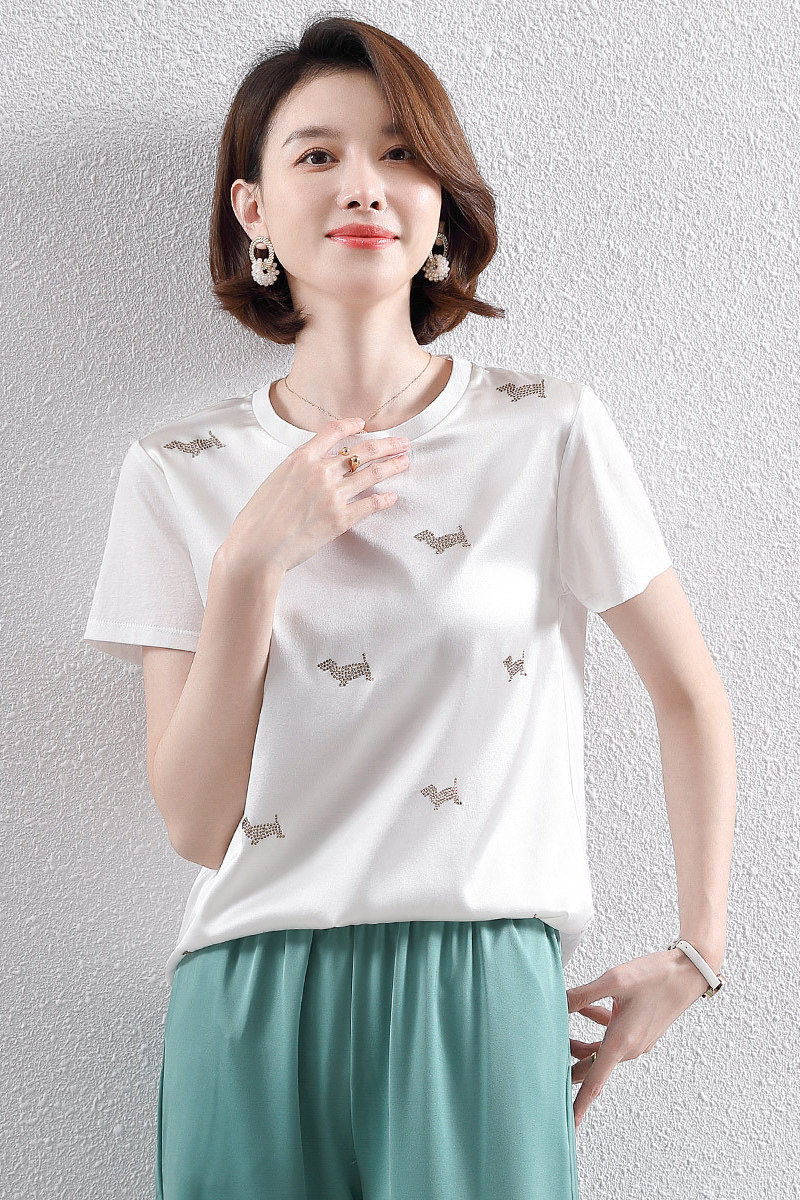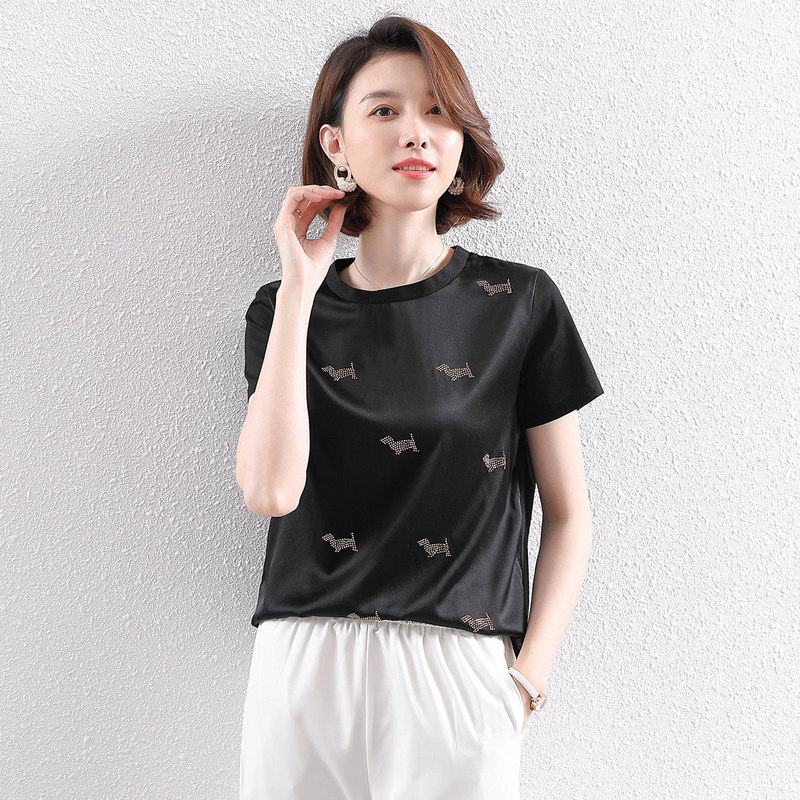 Silk short-sleeved t-shirt women's 2021 new summer high-quality big-name casual all-match hot diamond ice silk T-shirt FORTEl