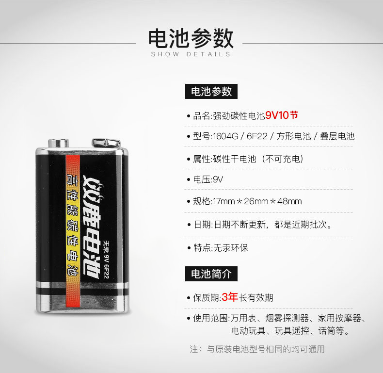 Shuanglu 9V battery 6F22 laminated square carbon smoke alarm microphone multimeter battery nine volts 10 capsules