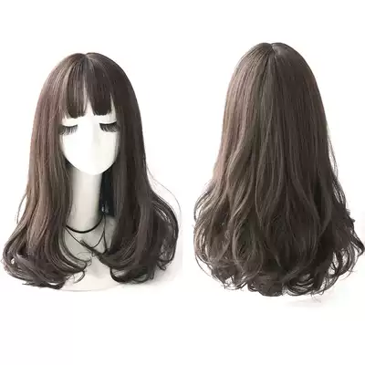 Wig female air banghai long hair long curly hair micro roll natural round face big wave inner buckle Net Red full head sleeve