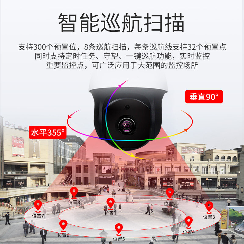Blue Shield Hikvision 7 inch high-speed dome camera automatic cruise 20 times intelligent zoom surveillance camera lens Outdoor HD night vision Home wired network monitor Infrared night vision automatic rotation