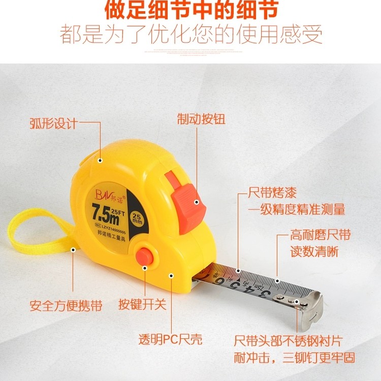 Bangnuo steel tape measure 3 meters 5 meters 7 5 meters 10 meters extremely small wear-resistant drop-resistant waterproof pull ruler box ruler woodworking ruler