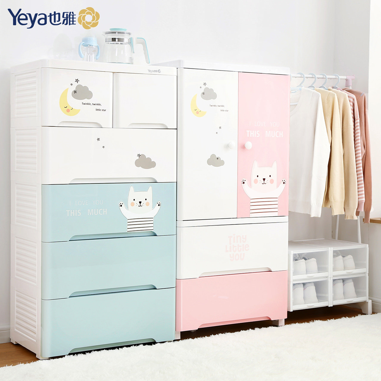 Yeya storage cabinet Plastic baby drawer storage cabinet Children's wardrobe thickened mobile storage 58 cabinet