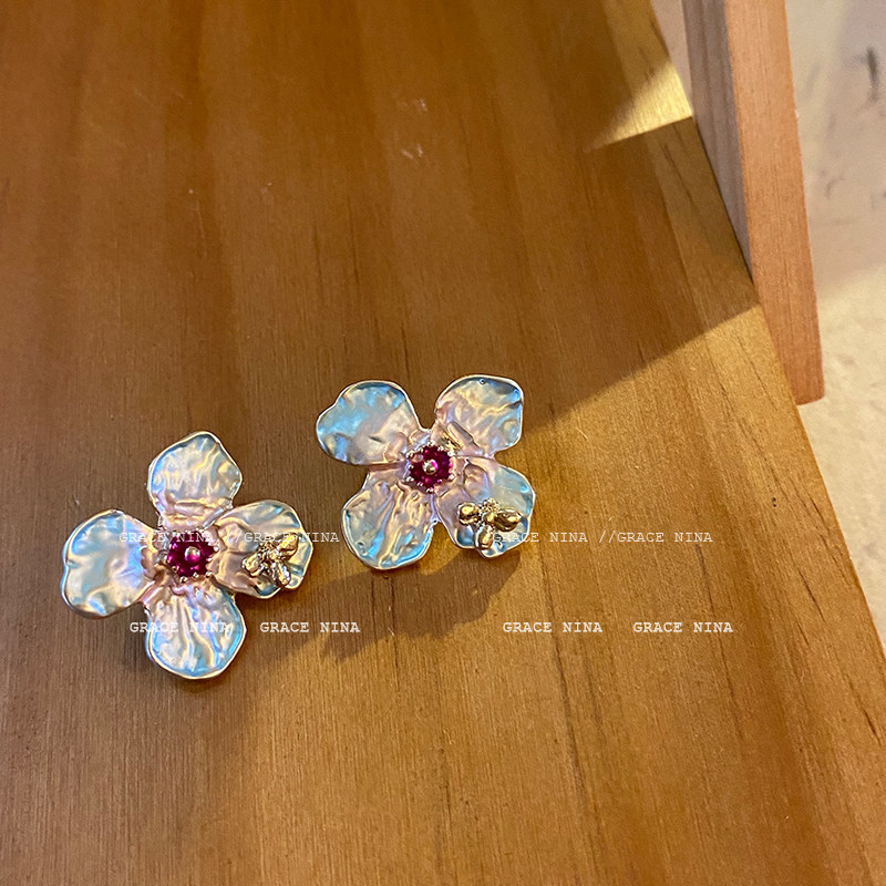 Bees are picking honey beside your ears Mori women's light luxury gradient petal earrings 2022 new trend