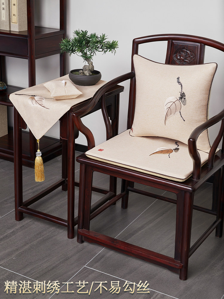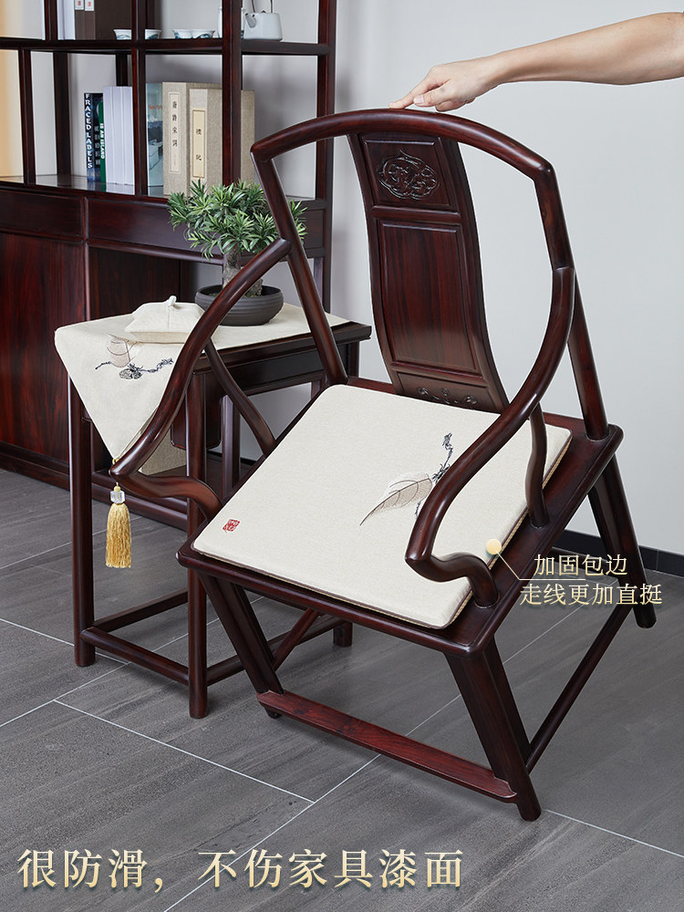 Chinese style sofa chair Cushion Red Wood Solid Wood Hemp Cloth Embroidery Mat Dining Chair Taiko Chair Circle Chair Officer Hat Chair Seat Cushion