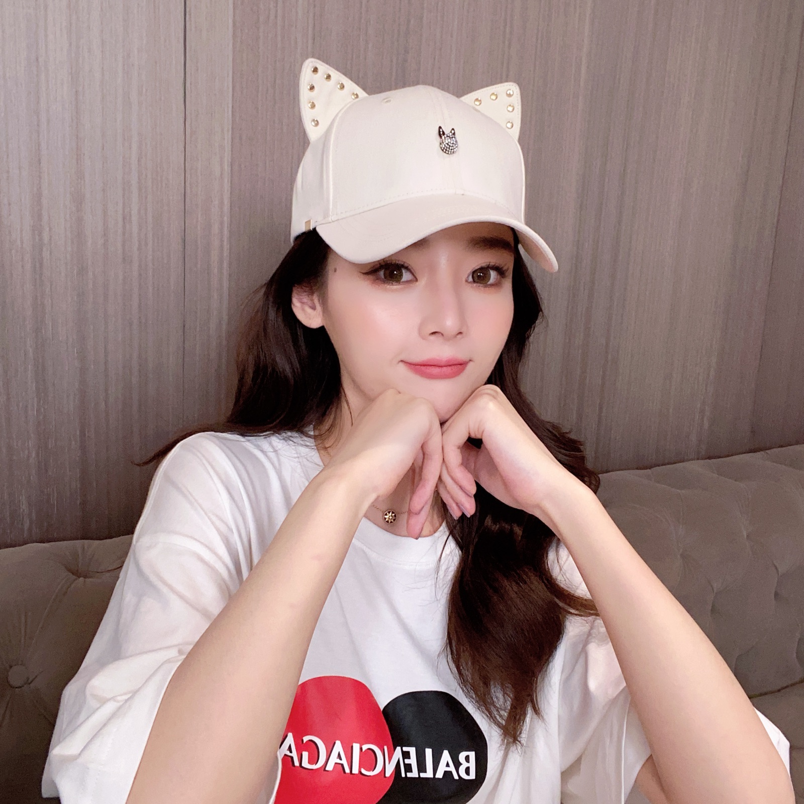 French Customised Duck Tongue Cap Woman White Rivet Cat Ears Cute Expats Small Mesh Red Hat Sweet and Baseball Cap Tide