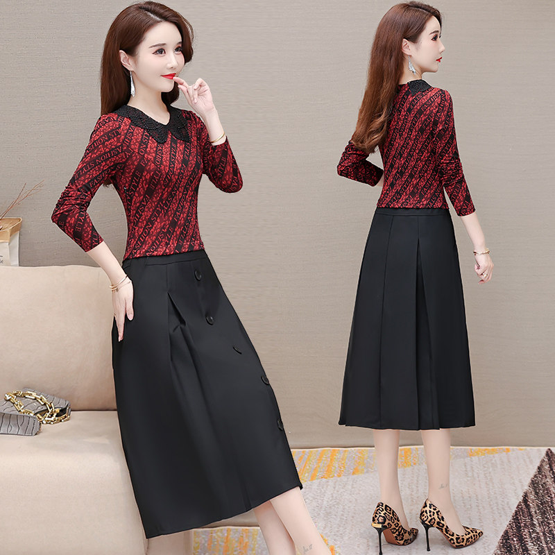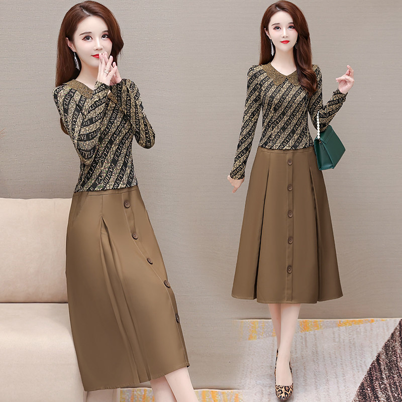 Fake Two Temperament Fashion This Year Pop Long Sleeve Dress Women 2022 New Spring Moms Noble Long Dresses