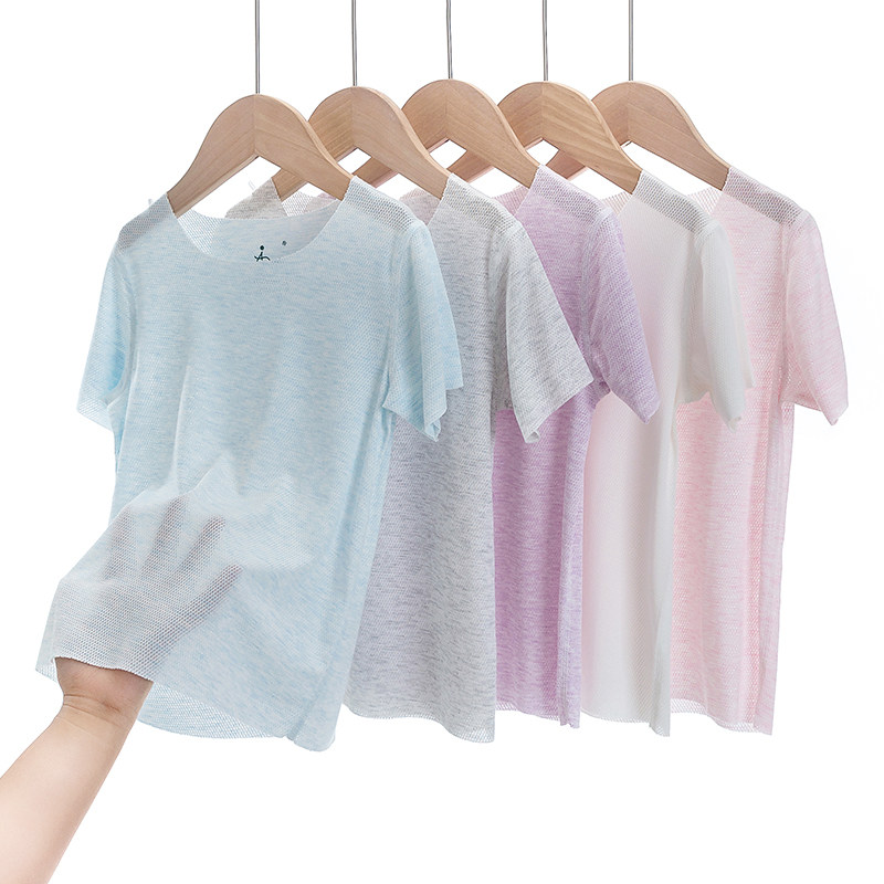 (Break code spike will not be returned) summer boys and girls mesh T-shirt ultra-thin bamboo fiber children's short-sleeved shirt baby